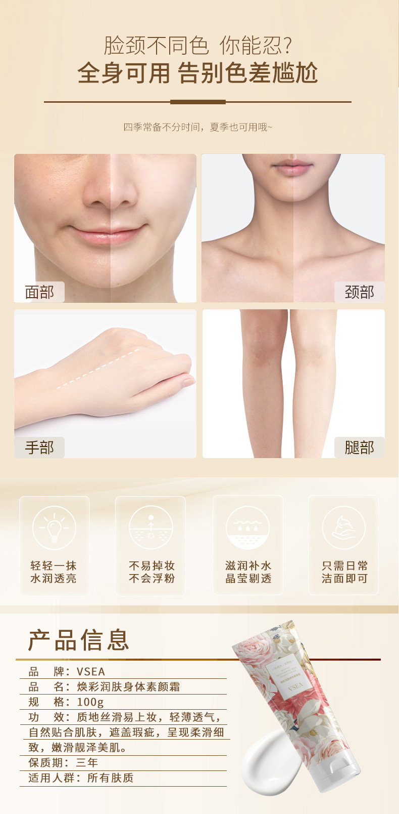 烟酰胺身体素颜霜提亮肤色不假白懒人素颜霜身体乳夏季女神必备