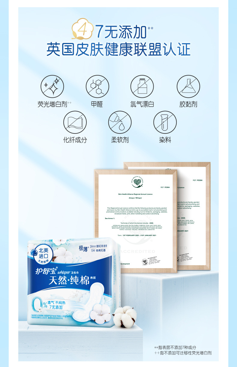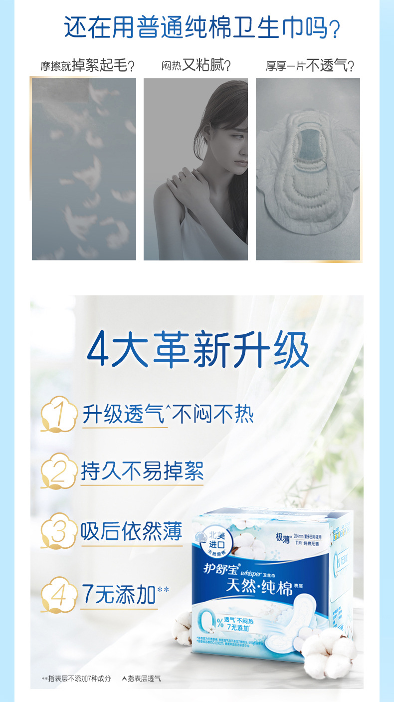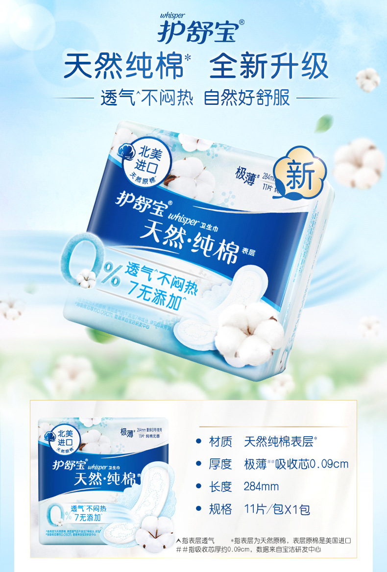 护舒宝纯棉卫生巾纯净无香型量多日用夜用284mm/240mm 10片